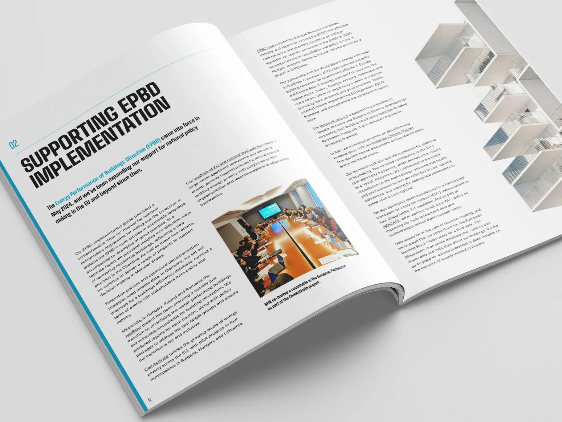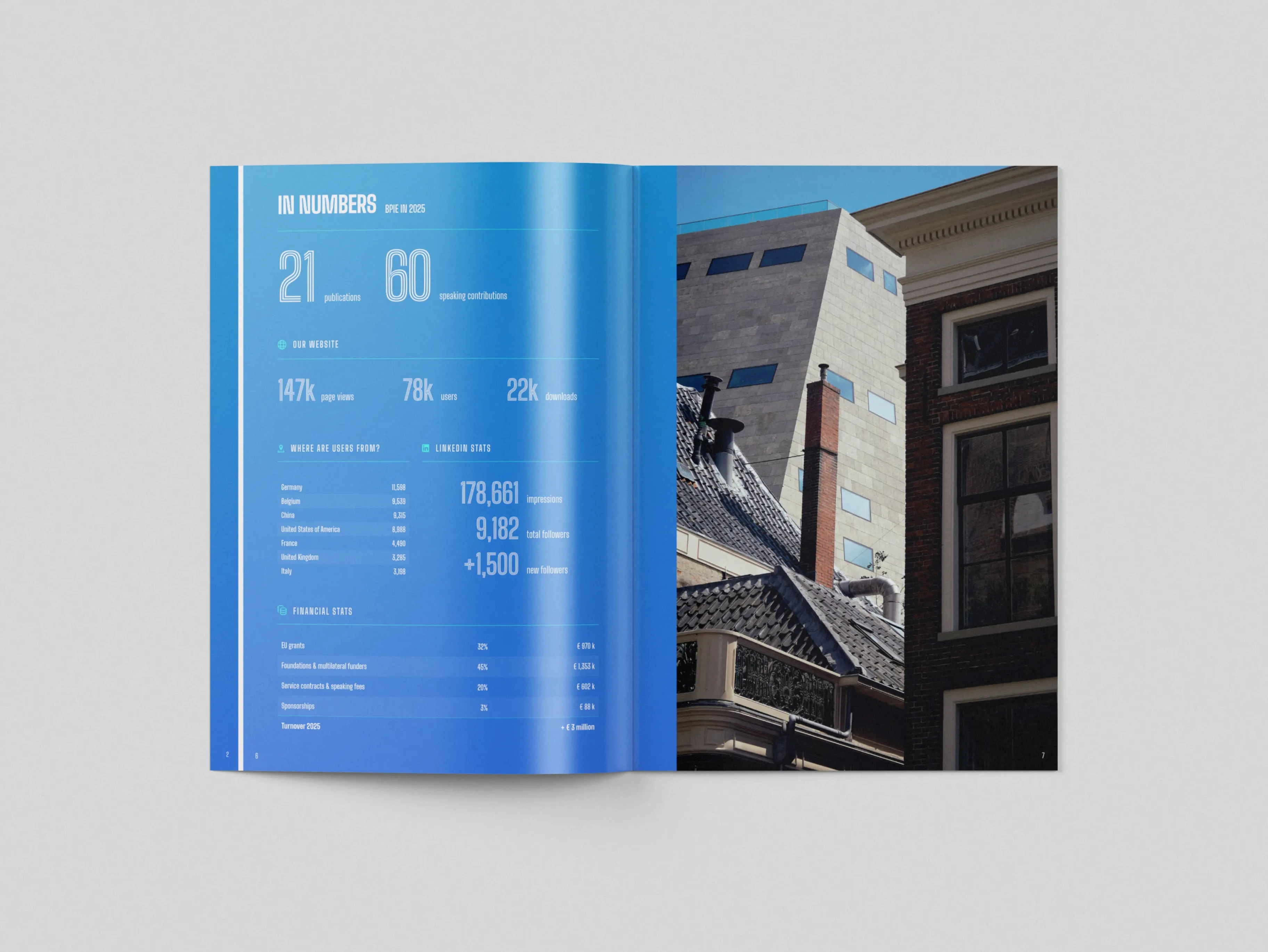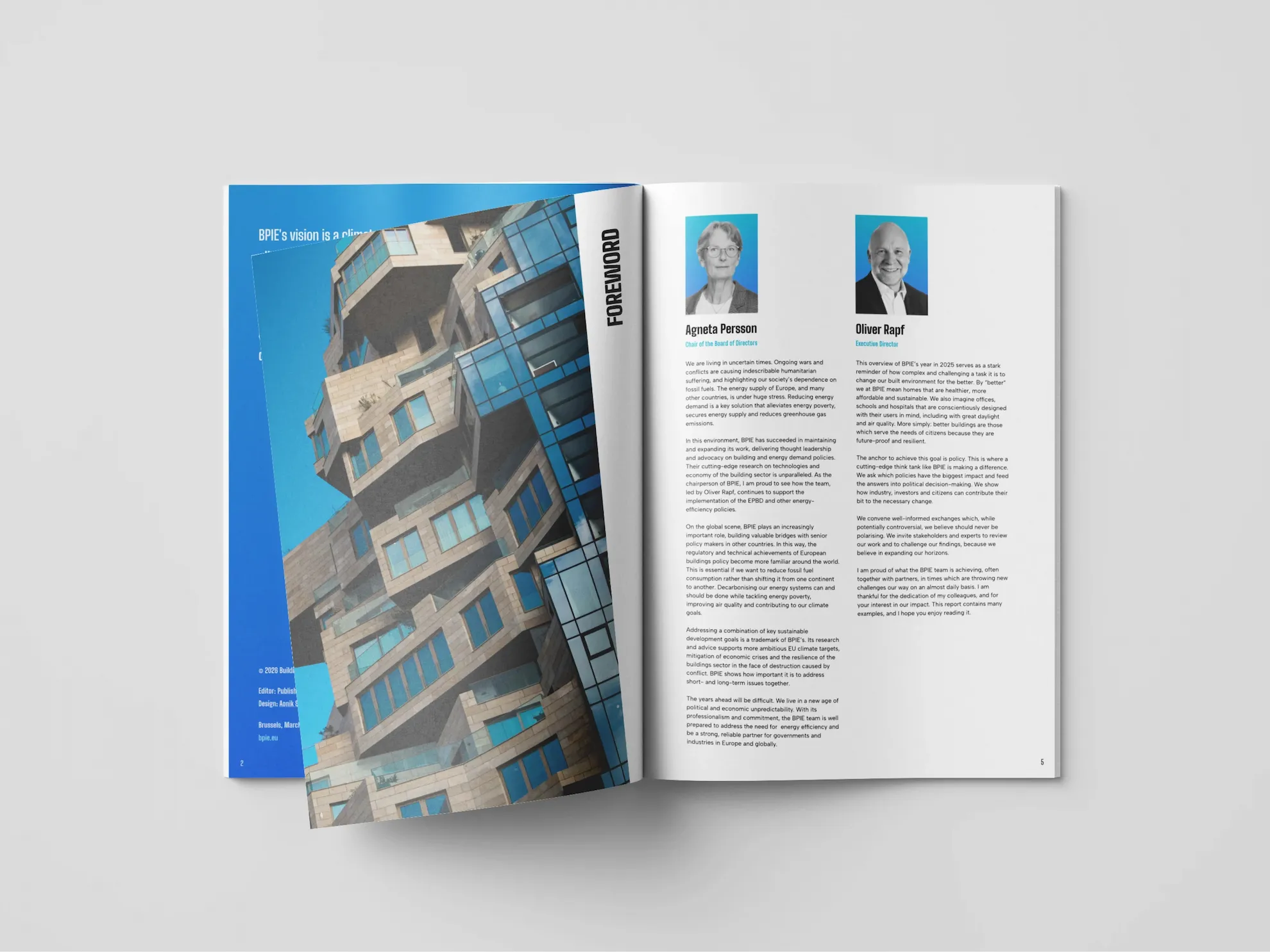 BPIE approached us to design their 2025 Annual Report at a point where they were rethinking how their research was presented. As a leading think tank working on the decarbonisation of Europe’s built environment, their content is rigorous and often quite dense, but previous publications didn’t fully reflect the ambition of their work. The goal was to move closer to an editorial approach while staying within their existing identity. We pushed their visual system further, introducing a refined typographic system, higher contrast layouts, and more deliberate use of imagery to make the content easier to navigate across both print and digital formats.